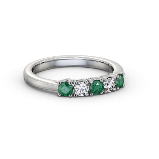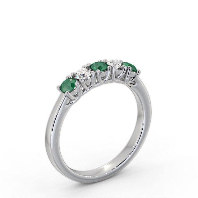 Alena Five Stone emerald and diamond 0.56ct ring in 18K White Gold. Ring featuring a 0.36 carat total weight of round emerald gemstones and a 0.20 carat total weight of round diamonds in a sleek and elegant style. This ring is available in a variety of metal types and we provide a free design service for any special modifications that you may require.
