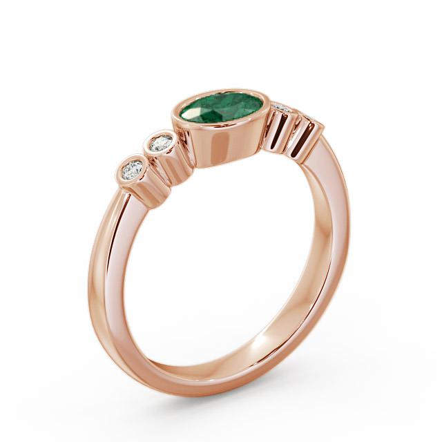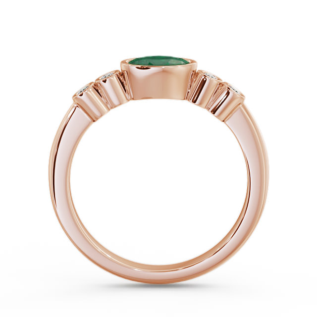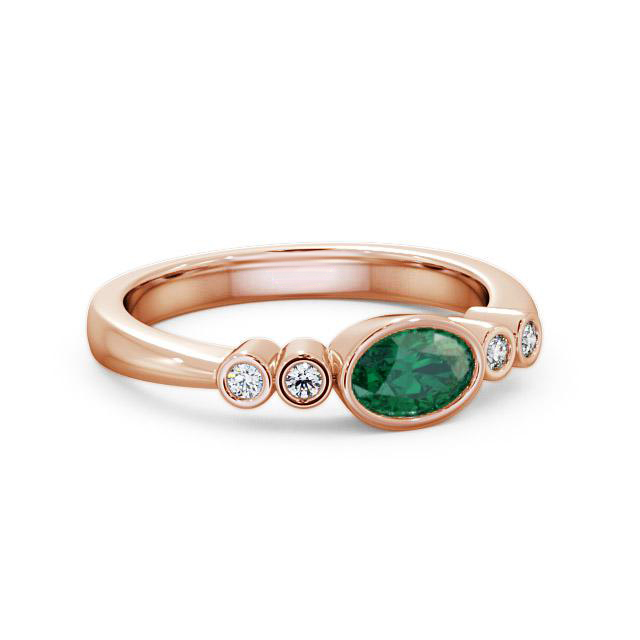 Somaya five stone emerald and diamond 0.58ct ring in a 18K Rose Gold setting. A beautiful gemstone and diamond ring with a unique design. At the centre is a 0.52 Carat oval-cut emerald bezel set and two round diamonds at each side with a 0.06 Carat total weight. This ring is available in a range of metal options with AAA grade gemstone. We offer a free design service for any customised changes that you may require.