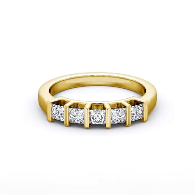 Five Stone Princess Diamond Tension Set Ring 18K Yellow Gold | Habiba