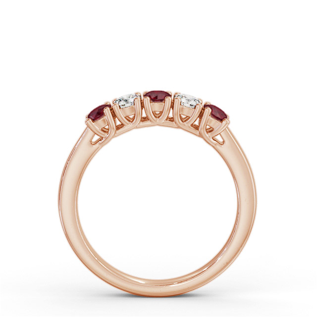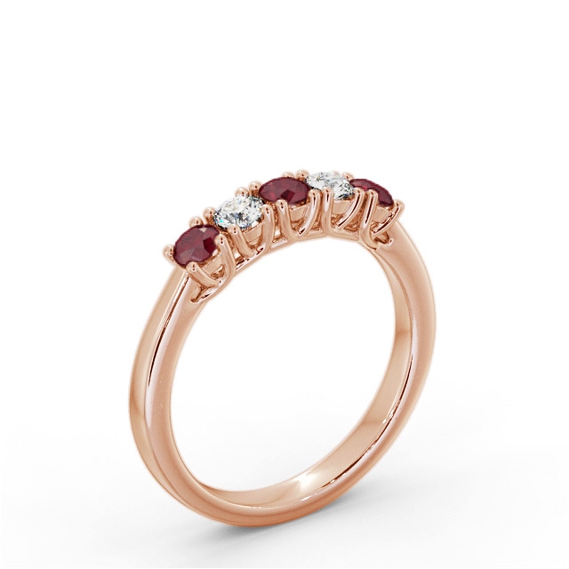 Alena Five Stone ruby and diamond 0.65ct ring in 18K Rose Gold. Ring featuring a 0.45 carat total weight of round ruby gemstones and a 0.20 carat total weight of round diamonds in a sleek and elegant style. This ring is available in a variety of metal types and we provide a free design service for any special modifications that you may require.