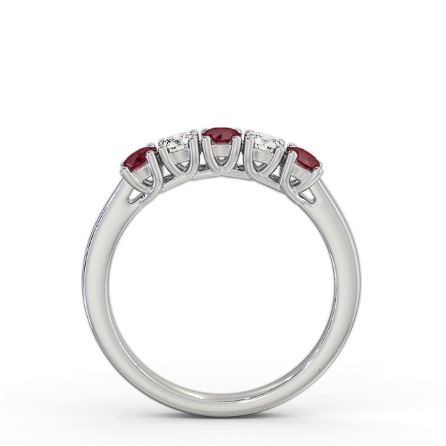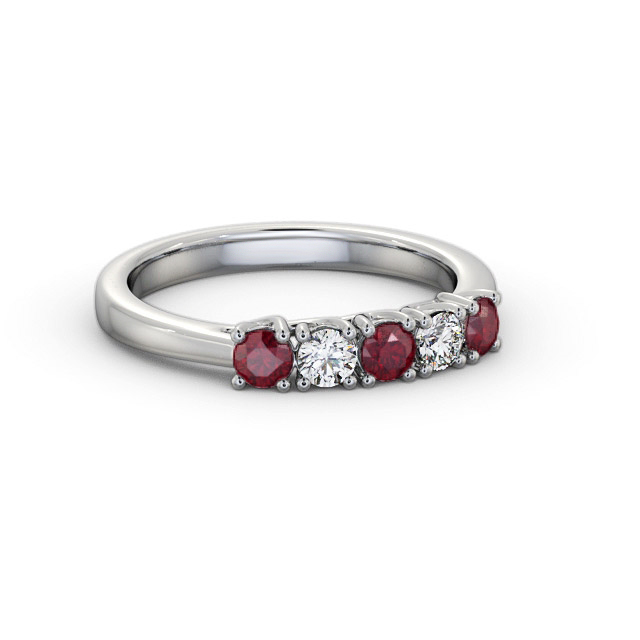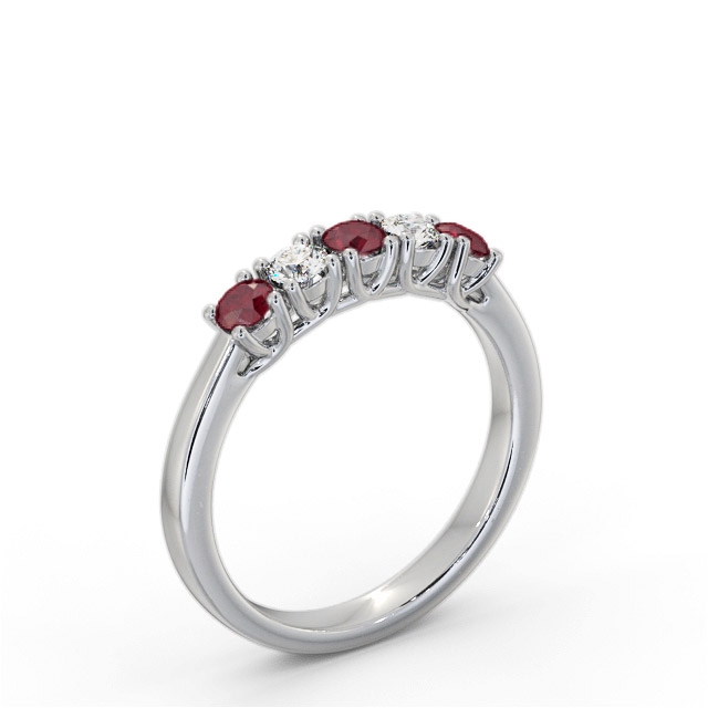 Alena Five Stone ruby and diamond 0.65ct ring in 18K White Gold. Ring featuring a 0.45 carat total weight of round ruby gemstones and a 0.20 carat total weight of round diamonds in a sleek and elegant style. This ring is available in a variety of metal types and we provide a free design service for any special modifications that you may require.