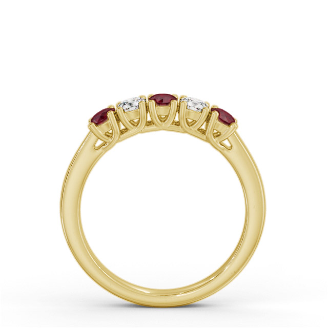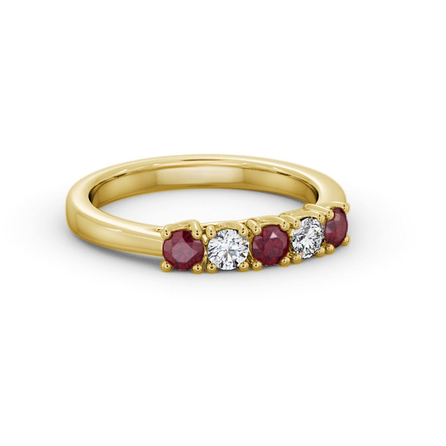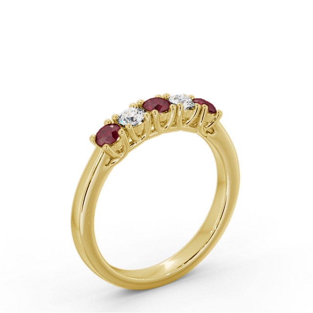 Alena Five Stone ruby and diamond 0.65ct ring in 9K Yellow Gold. Ring featuring a 0.45 carat total weight of round ruby gemstones and a 0.20 carat total weight of round diamonds in a sleek and elegant style. This ring is available in a variety of metal types and we provide a free design service for any special modifications that you may require.