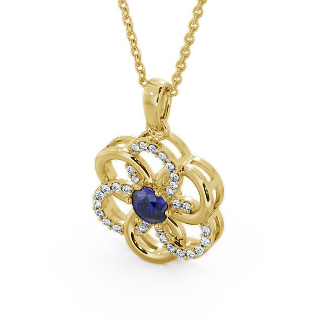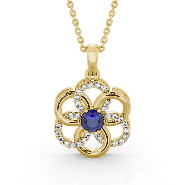 Floral Design Blue Sapphire and Diamond 0.91ct Pendant 9K Yellow Gold | Kelsi