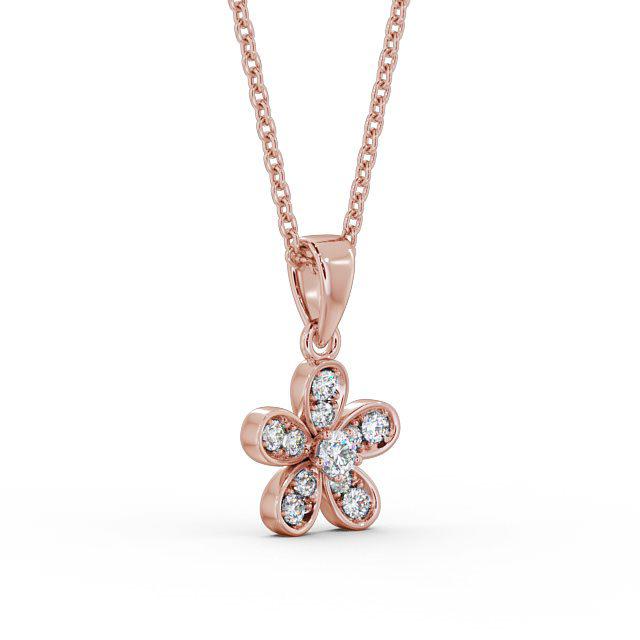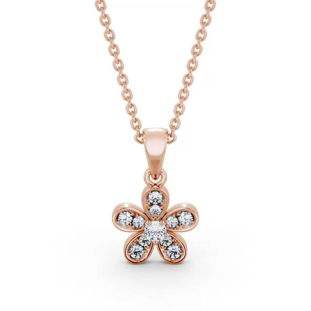 Kameron floral shaped diamond pendant in 18K Rose Gold. Elegant and charming, this flower pendant boasts a sparkling round diamond in the centre accompanied by round diamond studded petals. This pendant is available in a range of metal and chain options with your choice of natural or lab grown diamonds. We offer a free design service for any customised changes that you may require.