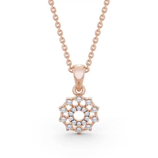 Sana floral shaped diamond pendant in 18K Rose Gold. Dainty and pretty, this pendant displays a beautiful cut-out flower pattern graced with sparkling round diamonds. This pendant is available in a range of metal and chain options with your choice of natural or lab grown diamonds. We offer a free design service for any customised changes that you may require.