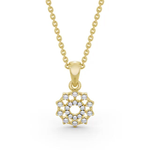 Sana floral shaped diamond pendant in 9K Yellow Gold. Dainty and pretty, this pendant displays a beautiful cut-out flower pattern graced with sparkling round diamonds. This pendant is available in a range of metal and chain options with your choice of natural or lab grown diamonds. We offer a free design service for any customised changes that you may require.