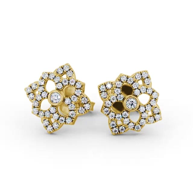 Floral Style Round Diamond Cluster Earrings 18K Yellow Gold | Violetta