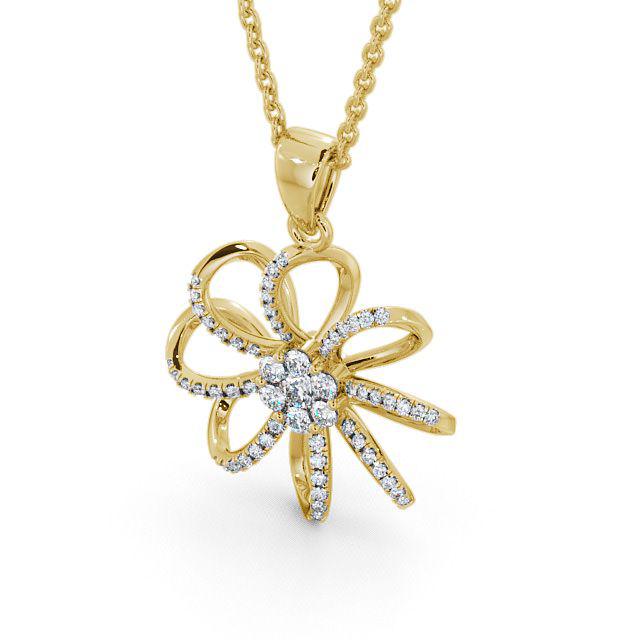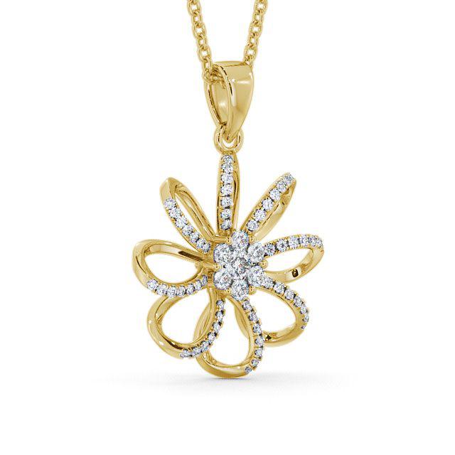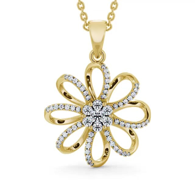 Valarie flower shaped diamond 0.45 Carat pendant in 9K Yellow Gold. This graceful flower design pendant features a cluster of round diamonds at the centre of eight open flower petals that are accented with smaller round diamonds. This pendant is available in a range of metal and chain options with your choice of natural or lab grown diamonds. We offer a free design service for any customised changes that you may require.