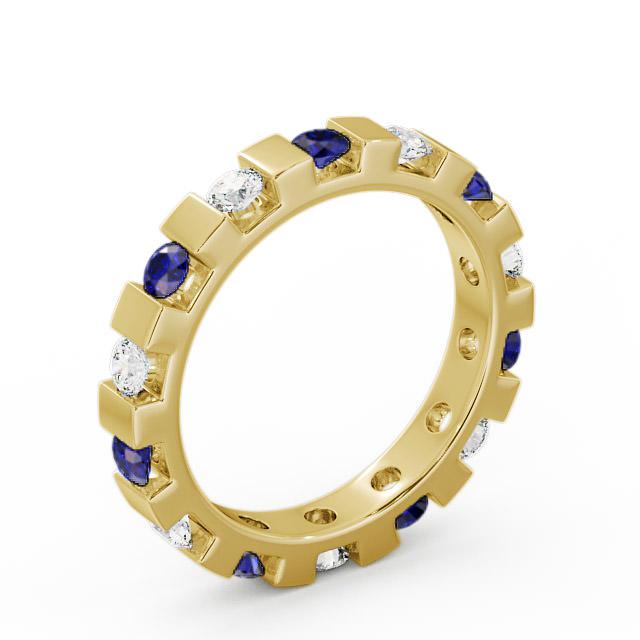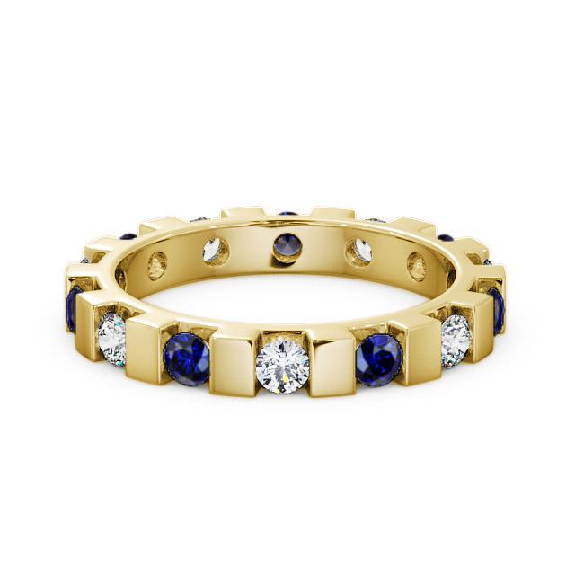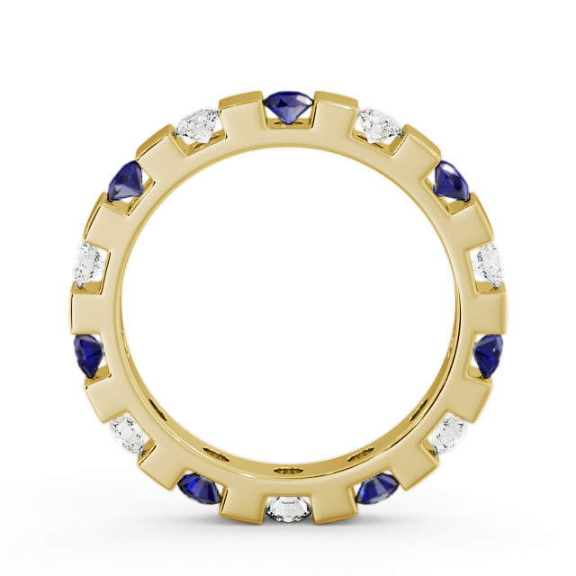 Anila full eternity blue sapphire and diamond 1.05ct ring in a 18K Yellow Gold setting. An alluring eternity design, this elegant ring is bar set with alternate 0.63 Carat round blue sapphires and sparkling round diamonds totalling to 0.42 Carat. This ring is available in a range of metal options with AAA grade gemstone. We offer a free design service for any customised changes that you may require.