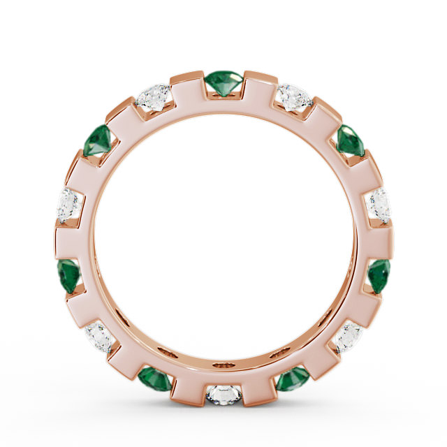 Anila full eternity emerald and diamond 0.91ct ring in a 9K Rose Gold setting. An alluring eternity design, this elegant ring is bar set with alternate 0.49 Carat round emeralds and sparkling round diamonds totalling to 0.42 Carat. This ring is available in a range of metal options with AAA grade gemstone. We offer a free design service for any customised changes that you may require.