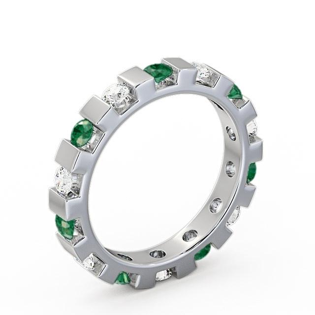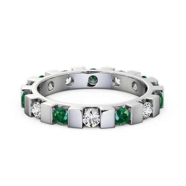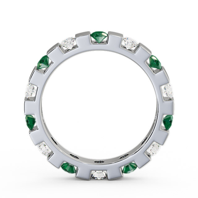 Anila full eternity emerald and diamond 0.91ct ring in a 9K White Gold setting. An alluring eternity design, this elegant ring is bar set with alternate 0.49 Carat round emeralds and sparkling round diamonds totalling to 0.42 Carat. This ring is available in a range of metal options with AAA grade gemstone. We offer a free design service for any customised changes that you may require.