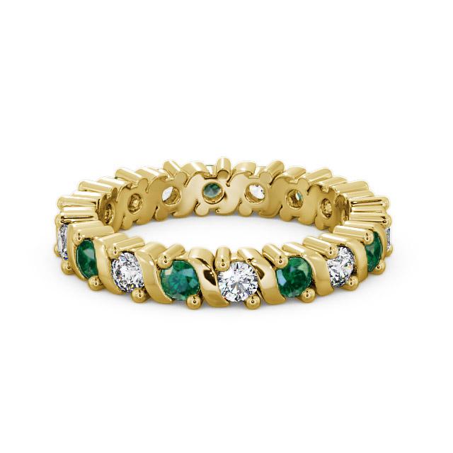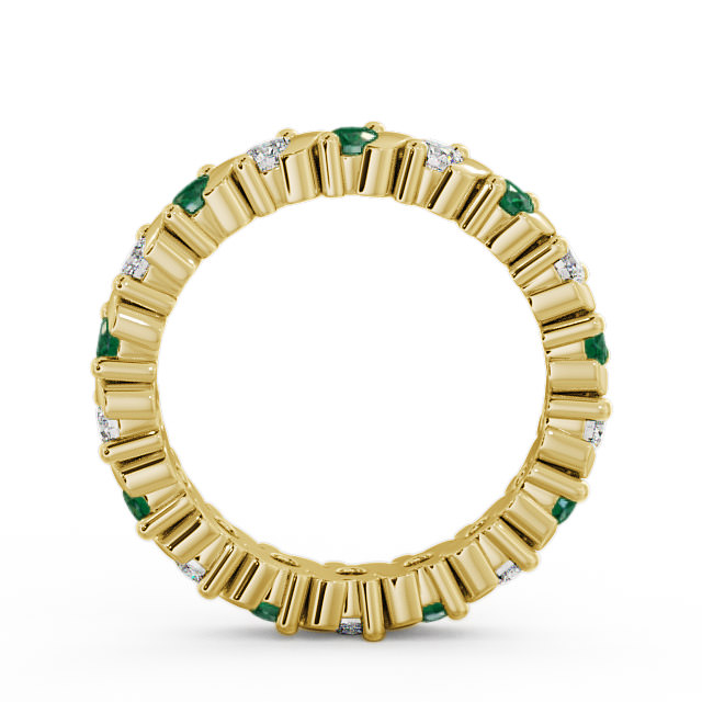 Elliana full eternity emerald and diamond 1.17ct ring in a 18K Yellow Gold setting. Simply elegant, this eternity style ring is completely encircled with an alternating 0.63 Carat total weight of round emeralds and 0.54 Carat total weight of sparkling round diamonds held in a classic prong setting. This ring is available in a range of metal options with AAA grade gemstone. We offer a free design service for any customised changes that you may require.