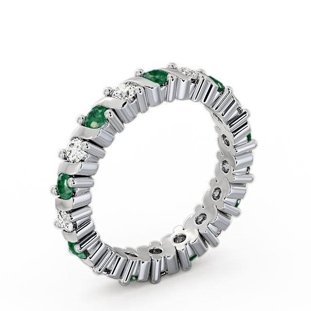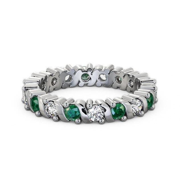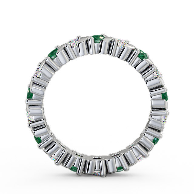 Elliana full eternity emerald and diamond 1.17ct ring in a 9K White Gold setting. Simply elegant, this eternity style ring is completely encircled with an alternating 0.63 Carat total weight of round emeralds and 0.54 Carat total weight of sparkling round diamonds held in a classic prong setting. This ring is available in a range of metal options with AAA grade gemstone. We offer a free design service for any customised changes that you may require.