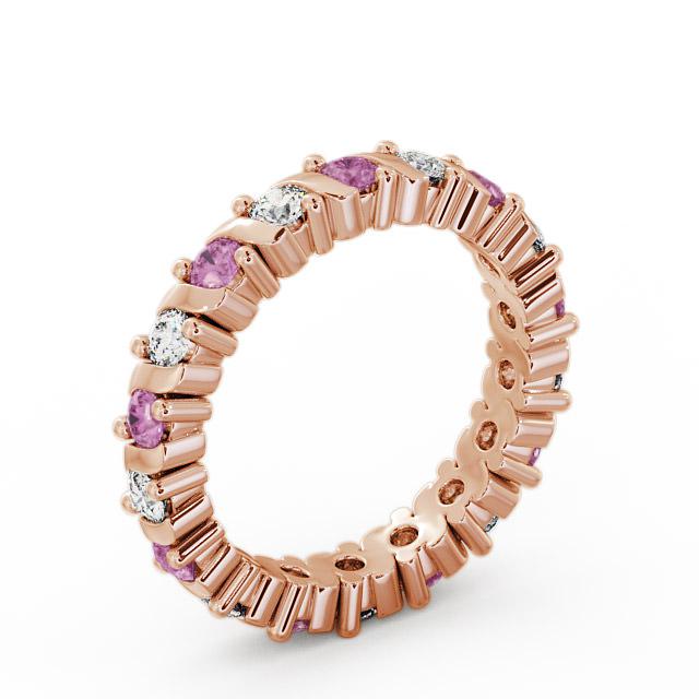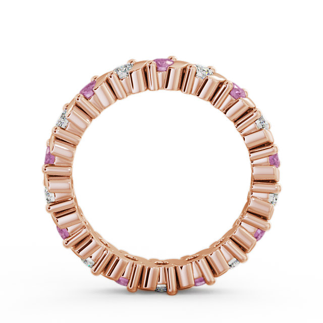 Elliana full eternity pink sapphire and diamond 1.35ct ring in a 18K Rose Gold setting. Simply elegant, this eternity style ring is completely encircled with an alternating 0.81 Carat total weight of round pink sapphires and 0.54 Carat total weight of sparkling round diamonds held in a classic prong setting. This ring is available in a range of metal options with AAA grade gemstone. We offer a free design service for any customised changes that you may require.