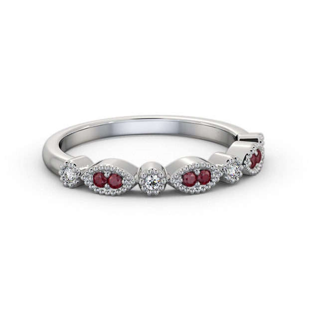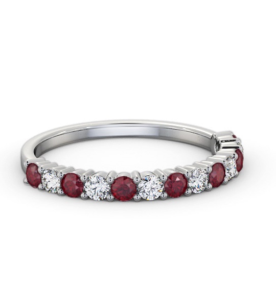 Half Eternity Ruby and Diamond 0.15ct Ring 18K White Gold | Dakona