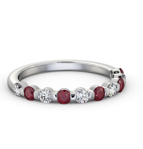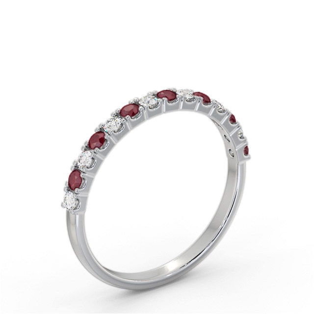 Hendrix half eternity ruby and diamond 0.38ct ring in 18K White Gold. Ring with a 0.20 Carat total weight of round ruby gemstones and a 0.18 Carat total weight of round diamonds in a traditional and elegant style. This ring is available in a variety of metal types and we provide a free design service for any special modifications that you may require.