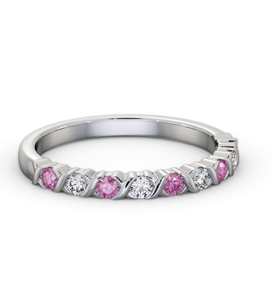 Mabry half eternity ruby and diamond 0.75ct ring in 18K White Gold. Ring featuring a 0.45 Carat total weight of round ruby gemstones and a 0.30 Carat total weight of round diamonds in a sleek and exquisite design. This ring is available in a variety of metal types and we provide a free design service for any special modifications that you may require.