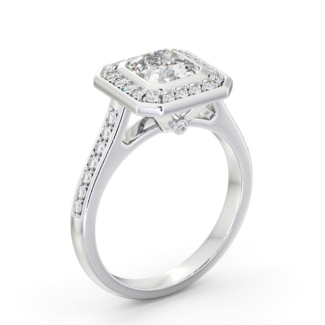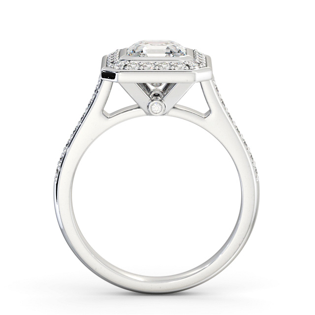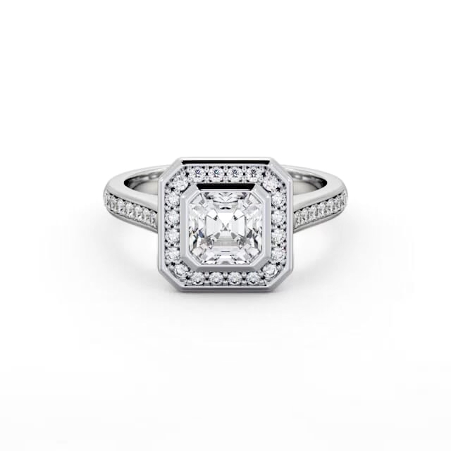 Halo Asscher Diamond Flush Setting Engagement Ring 9K White Gold | Kamila