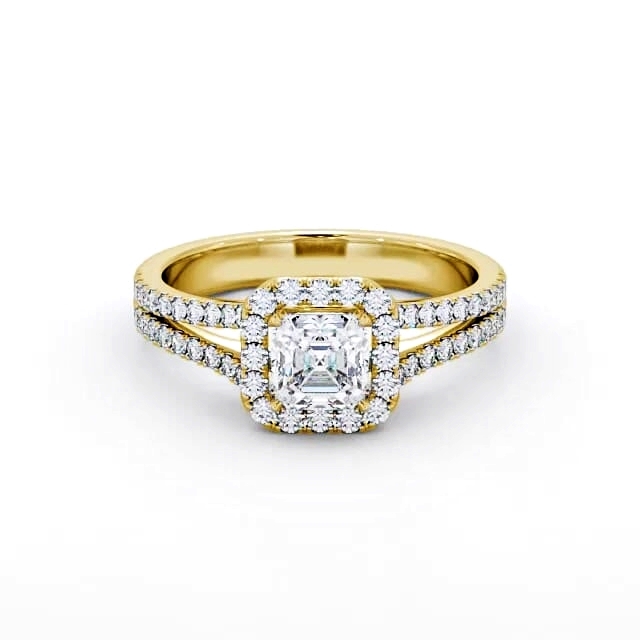 Halo Asscher Diamond Split Band Engagement Ring 9K Yellow Gold | Sonora