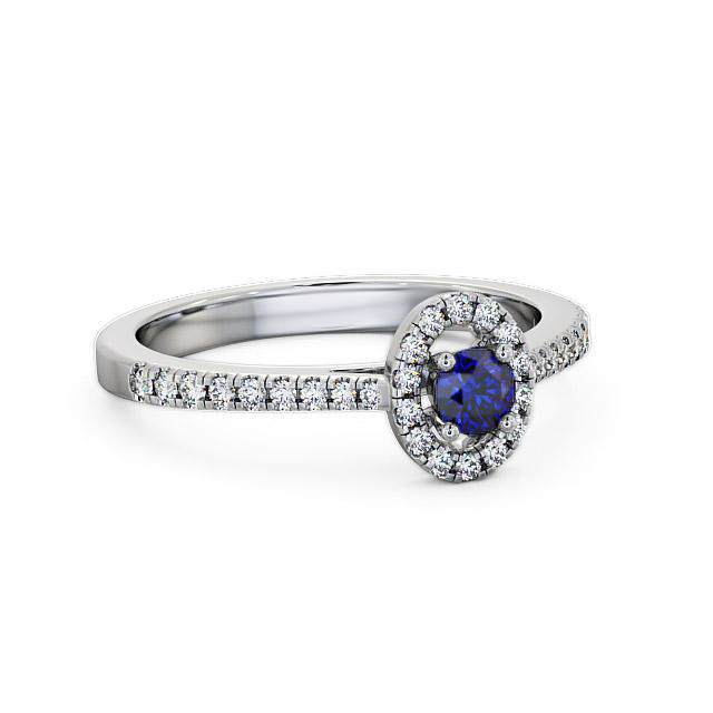 Halo Blue Sapphire and Diamond 0.36ct Ring 18K White Gold | Charlene