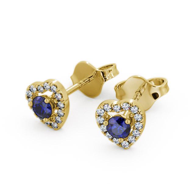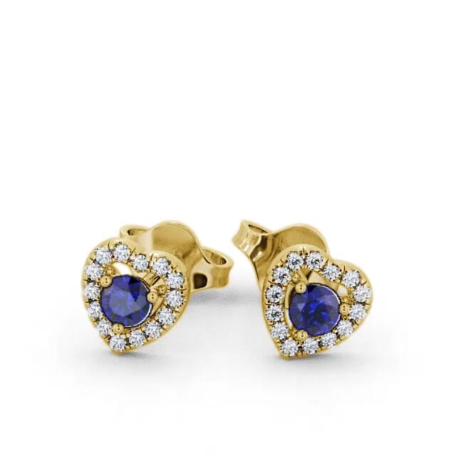 Bianka blue sapphire and diamond 0.56ct earrings in a 9K Yellow Gold setting. Simple yet gorgeous, this stunning pair of heart design stud earring showcases 0.40 Carat total weight round blue sapphire gemstones, haloed by 0.16 Carat total weight of round diamonds set in a heart frame. The total Carat weight is based on per pair. These earrings are available in a range of metal options with AAA grade gemstone. We offer a free design service for any customised changes that you may require.
