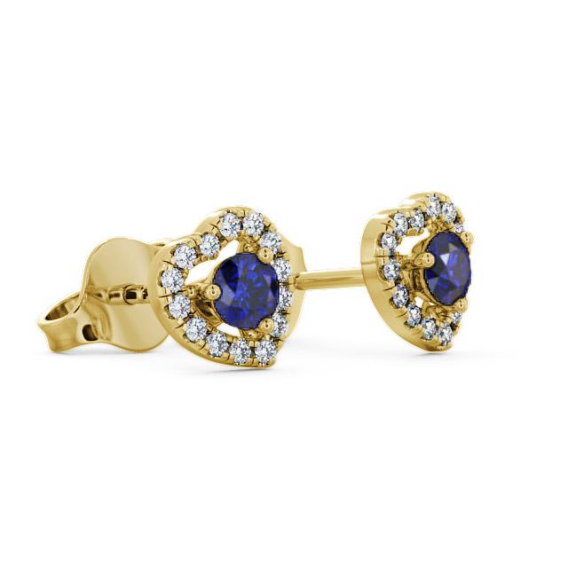 Halo Blue Sapphire and Diamond 0.56ct Earrings 9K Yellow Gold | Bianka