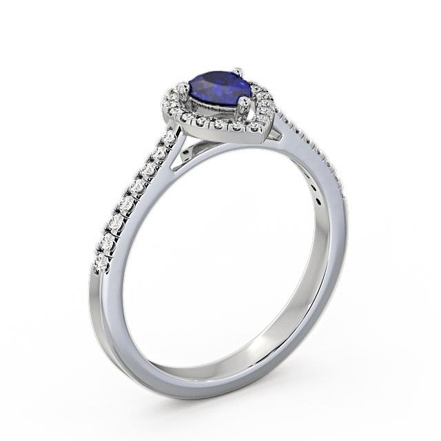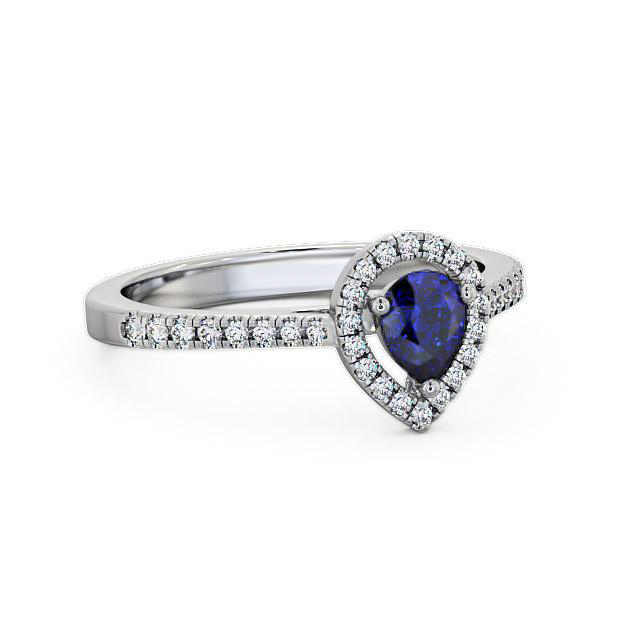 Jadore halo blue sapphire and diamond 0.70ct ring in a Platinum setting. An update to a classic, this ring features a beautiful 0.50 Carat pear shaped blue sapphire centre stone beautifully surrounded by a glistening halo of round diamonds, while additional round diamonds adorn both the shoulders. Diamonds weighs 0.20 Carat total weight. This ring is available in a range of metal options with AAA grade gemstone. We offer a free design service for any customised changes that you may require.