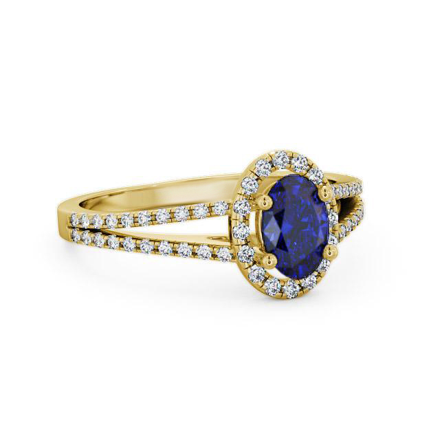 Halo Blue Sapphire and Diamond 0.86ct Ring 18K Yellow Gold | Jailah