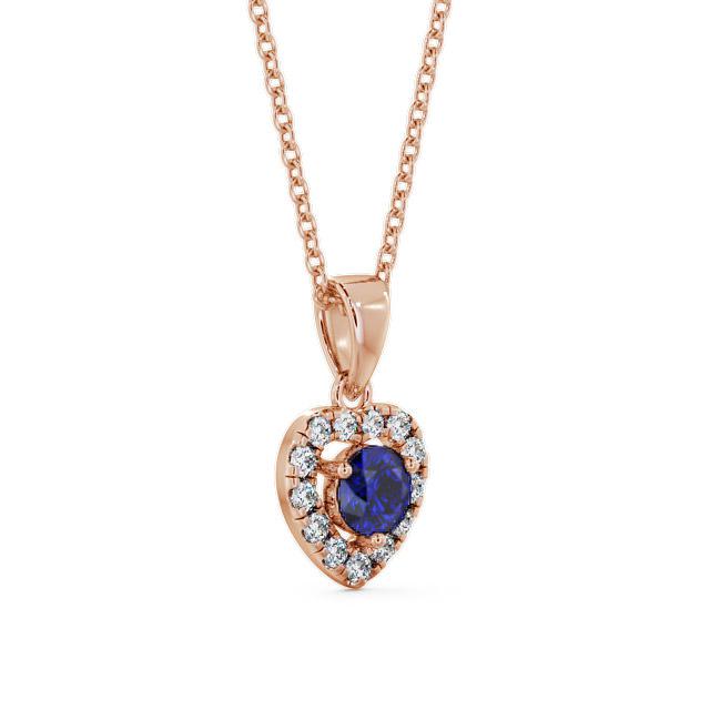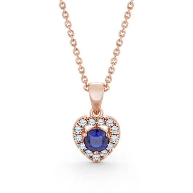 Sakina halo blue sapphire and diamond 0.90ct pendant in a 18K Rose Gold setting. Romantically delightful, this heart design pendant features a 0.65 Carat round-shaped blue sapphire gemstone highlighted by a glimmering halo of glistening 0.25 Carat total weight of round diamonds. The pendant is available in a range of metal and chain options with AAA grade gemstones. We offer a free design service for any customised changes that you may require.