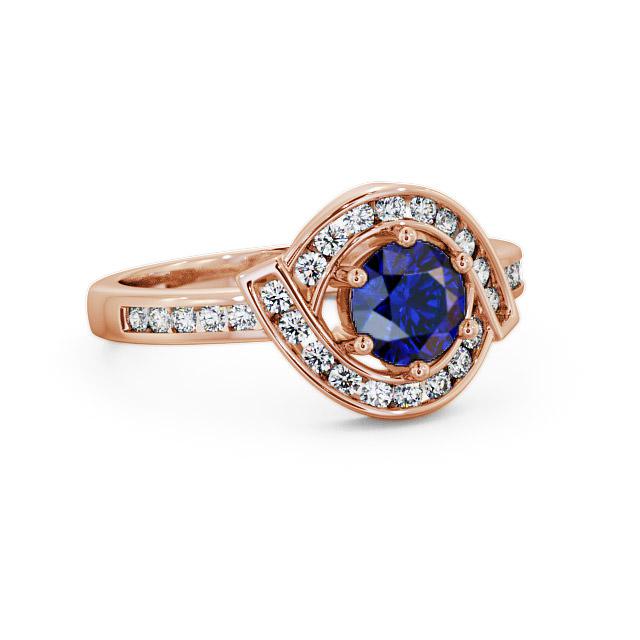 Lenna halo blue sapphire and diamond 0.91ct ring in a 18K Rose Gold setting. This designer ring boasts a stunning 0.65 Carat round blue sapphire gemstone in the centre encircled by channel set sparkling round diamonds. Additional round diamonds flow down on either side of the shank, total diamonds weighs 0.26 Carat. This ring is available in a range of metal options with AAA grade gemstone. We offer a free design service for any customised changes that you may require.