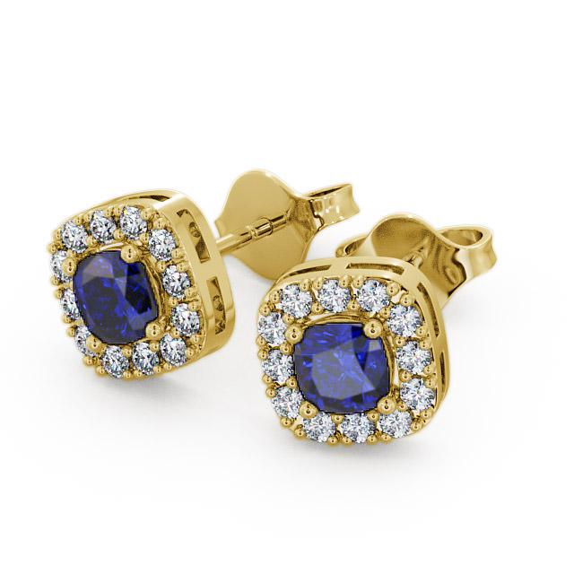 Halo Blue Sapphire and Diamond 1.12ct Earrings 18K Yellow Gold | Kendall