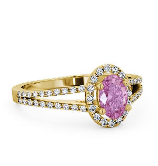 Karely halo blue sapphire and diamond 1.20ct ring in a 18K Yellow Gold setting. Regal and radiant, this ring features a lovely 1.05 Carat oval-shaped blue sapphire in the centre framed by a sparkling halo of round diamonds that continue down the shank design. Total diamonds weighs 0.15 Carat. This ring is available in a range of metal options with AAA grade gemstone. We offer a free design service for any customised changes that you may require.