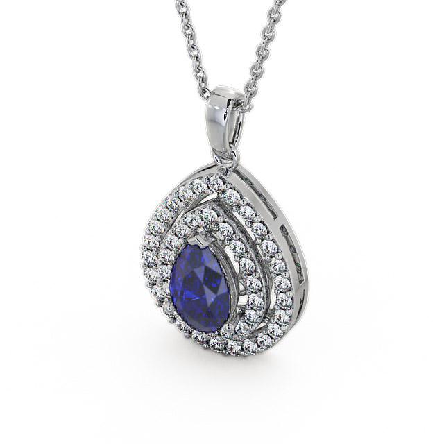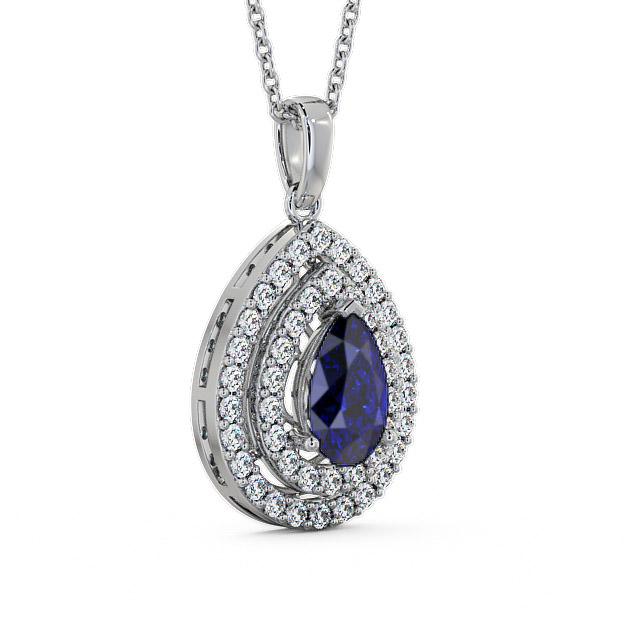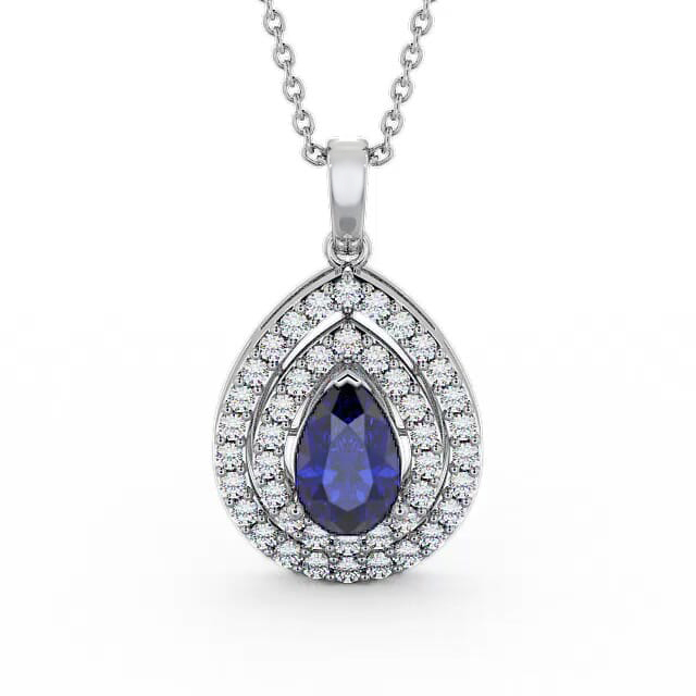 Harriet halo blue sapphire and diamond 1.44ct pendant in a 9K White Gold setting. Elegant and exquisite, this pendant features a 1.00 Carat pear shaped blue sapphire covered in a double halo of sparkling 0.44 Carat total weight of round diamonds. The pendant is available in a range of metal and chain options with AAA grade gemstone. We offer a free design service for any customised changes that you may require.