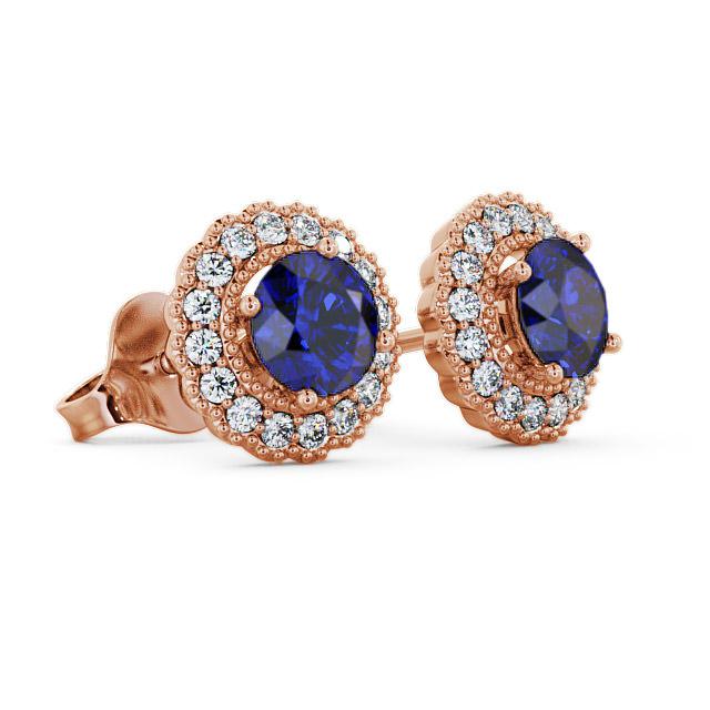 Halo Blue Sapphire and Diamond 1.56ct Earrings 9K Rose Gold | Elouise