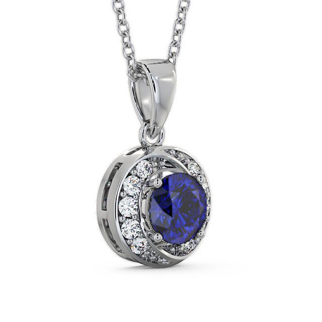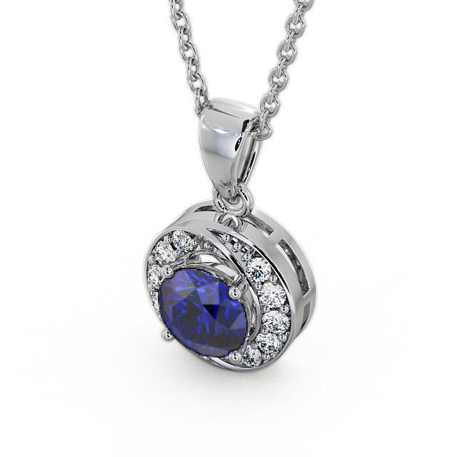 Halo Blue Sapphire and Diamond 1.61ct Pendant 18K White Gold | Kamri