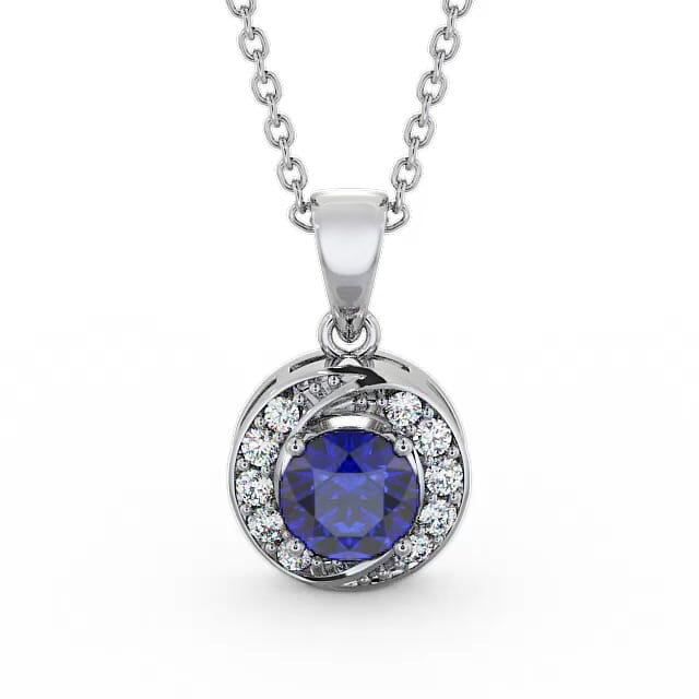 Kamri halo blue sapphire and diamond 1.61ct pendant in a 18K White Gold setting. Shimmering with style, this alluring pendant showcases a 1.41 Carat round blue sapphire wrapped in 0.20ct of round diamonds. The pendant is available in a range of metal and chain options with AAA grade gemstones. We offer a free design service for any customised changes that you may require.