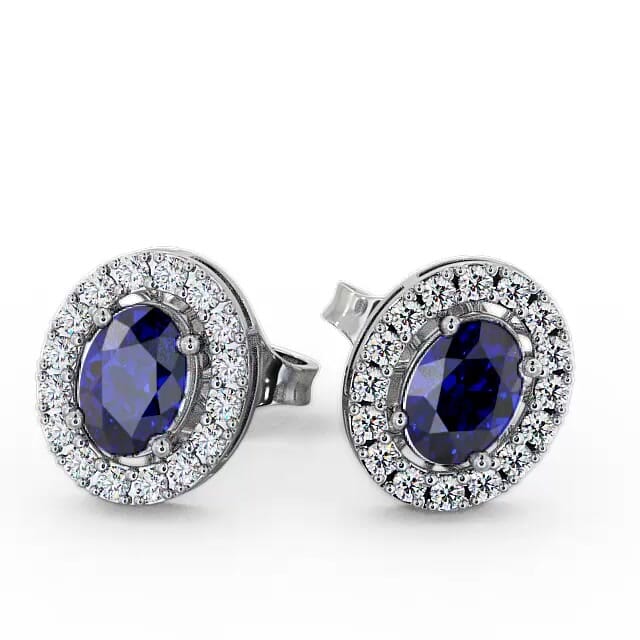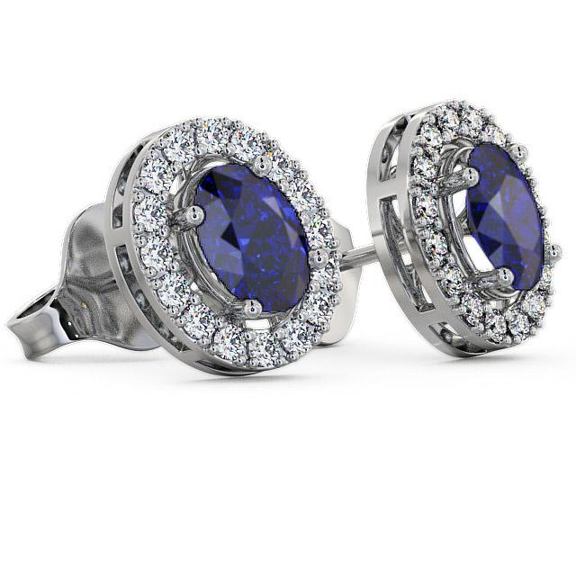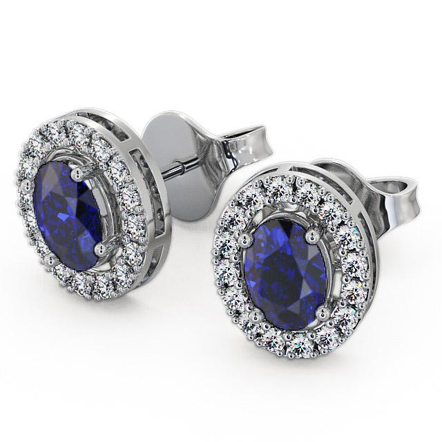 Halo Blue Sapphire and Diamond 1.62ct Earrings 9K White Gold | Jayna