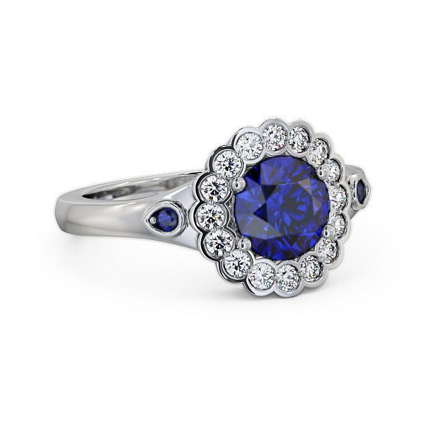Halo Blue Sapphire and Diamond 1.69ct Ring Platinum | Emmalin