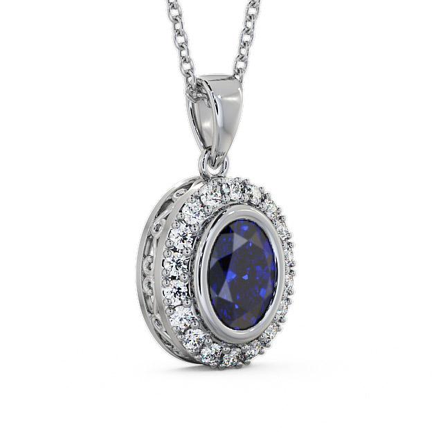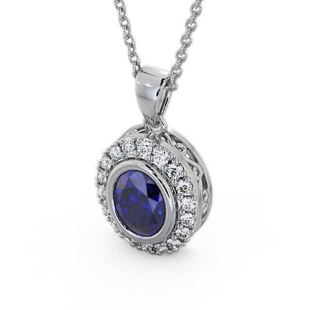 Halo Blue Sapphire and Diamond 1.82ct Pendant 18K White Gold | Haylen