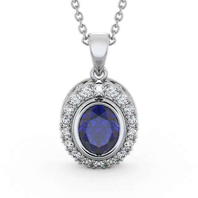 Haylen Halo blue sapphire and diamond 1.82ct pendant in a 18K White Gold setting. With just a right touch of sparkle, this dainty pendant features a 1.55 Carat oval-cut blue sapphire gemstone bezel set in the centre of shimmering 0.27 Carat total weight of round diamonds. The pendant is available in a range of metal and chain options with AAA grade gemstones. We offer a free design service for any customised changes that you may require.