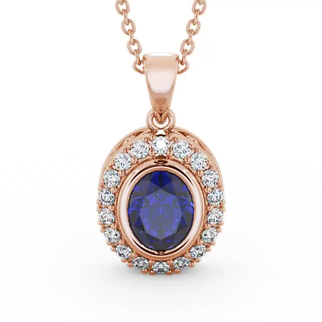 Haylen Halo blue sapphire and diamond 1.82ct pendant in a 9K Rose Gold setting. With just a right touch of sparkle, this dainty pendant features a 1.55 Carat oval-cut blue sapphire gemstone bezel set in the centre of shimmering 0.27 Carat total weight of round diamonds. The pendant is available in a range of metal and chain options with AAA grade gemstones. We offer a free design service for any customised changes that you may require.