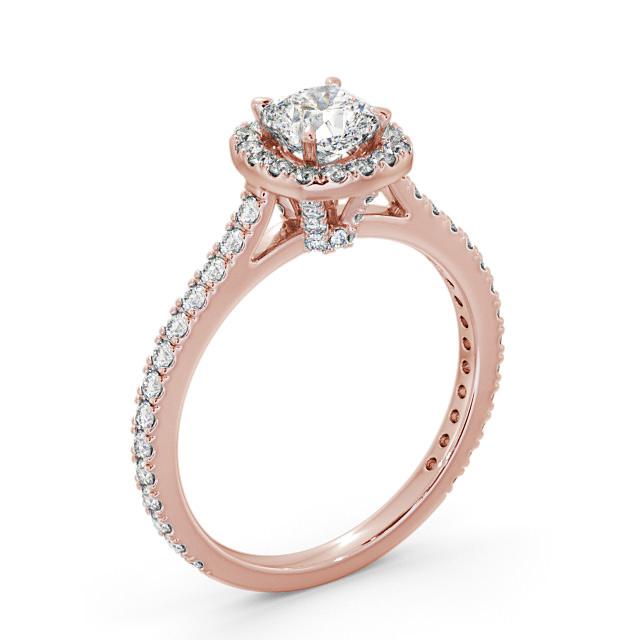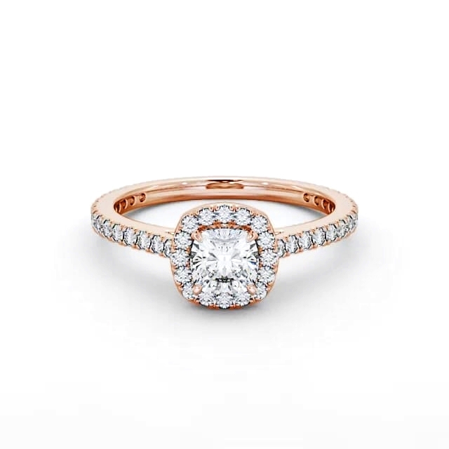 Emarie diamond engagement ring with a halo 18K Rose Gold setting. This dazzling engagement ring flaunts a cushion cut diamond nestled inside a halo of glistening round diamonds. More round diamonds on the shoulders and underneath provides extra sparkle. Smaller diamonds will be of VS1 Clarity and F Colour as standard. This ring is available in a range of metal options and your choice of natural or lab grown diamonds. We offer a free design service for any customised changes that you may require.