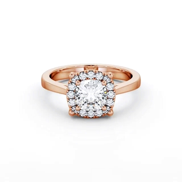 Madeline diamond engagement ring with a halo 18K Rose Gold setting. With a timeless beauty this ring showcases a glittering square shaped halo of round diamonds and a cushion shaped centre diamond for a beautiful effect. Smaller diamonds will be of VS1 Clarity and F Colour as standard. This ring is available in a range of metal options and your choice of natural or lab grown diamonds. We offer a free design service for any customised changes that you may require.