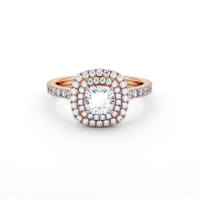 Double Halo Cushion Diamond Engagement Ring 18K Rose Gold | Tyonna