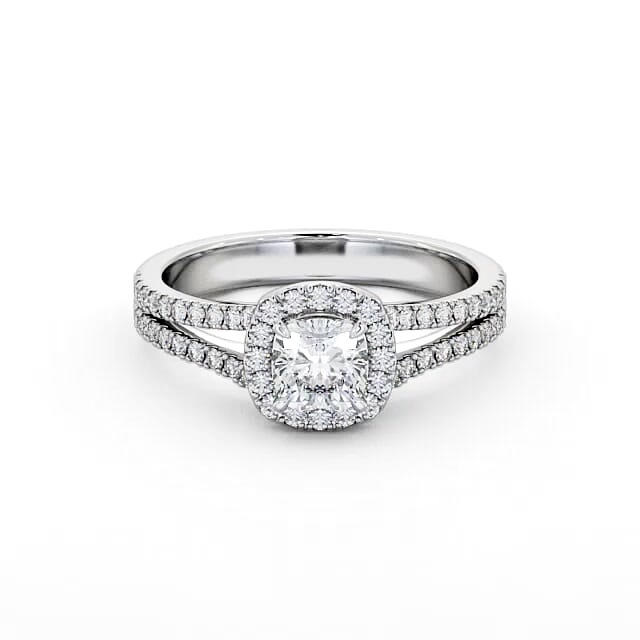 Halo Cushion Diamond Split Band Engagement Ring 18K White Gold | Averly