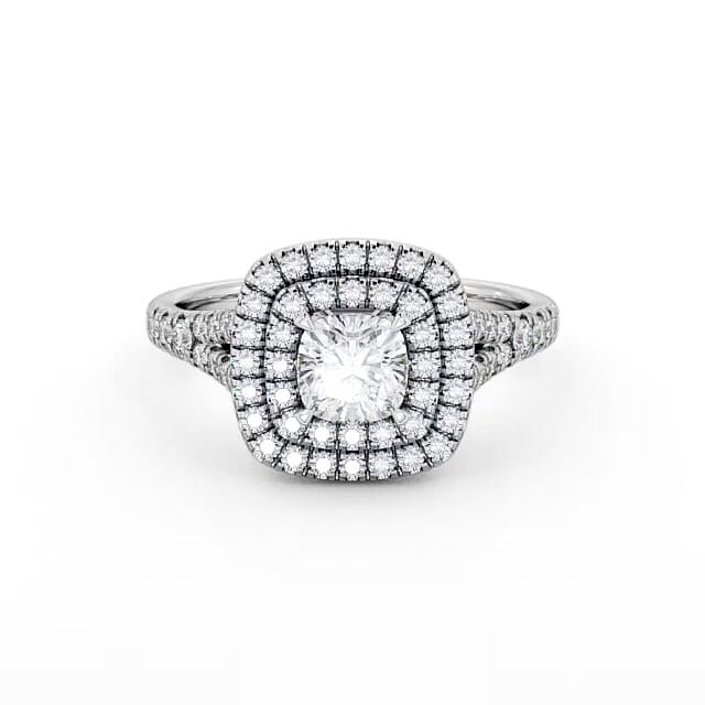 Halo Cushion Diamond Double Row Engagement Ring Platinum | Naisha