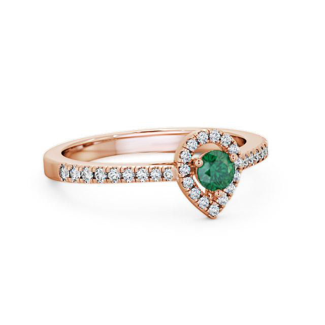 Rivka halo emerald and diamond 0.34ct ring in a 9K Rose Gold setting. This gorgeous ring glitter with a 0.17 Carat central round emerald gemstone framed by a pear shaped halo of sparkling round diamonds and additional diamond-lined shank. Diamond weighs 0.17 Carat total weight. This ring is available in a range of metal options with AAA grade gemstone. We offer a free design service for any customised changes that you may require.