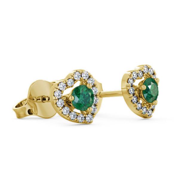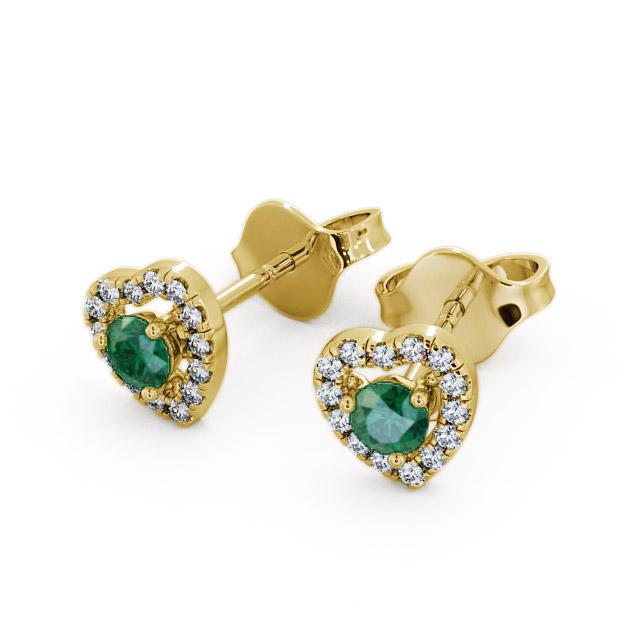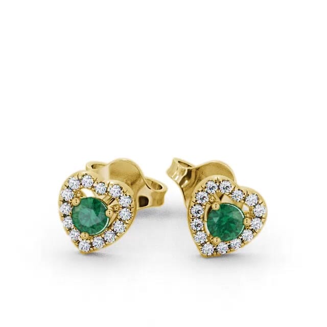 Bianka emerald and diamond 0.50ct earrings in a 9K Yellow Gold setting. Simple yet gorgeous, this stunning pair of heart design stud earring showcases 0.34 Carat total weight round emerald gemstones, haloed by 0.16 Carat total weight of round diamonds set in a heart frame. The total Carat weight is based on per pair. These earrings are available in a range of metal options with AAA grade gemstone. We offer a free design service for any customised changes that you may require.