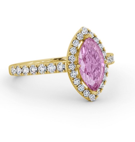 Laven halo emerald and diamond 1.05ct ring in 18K Yellow Gold. A solitary 0.60ct Cushion shaped emerald is surrounded by a cluster of small round shaped diamonds that extend down either side of the band for a total diamond weight of 0.45ct in this traditional and beautiful style ring. This ring is available in a variety of metal types and your choice of natural or lab grown gems. We provide a free design service for any special modifications that you may require.