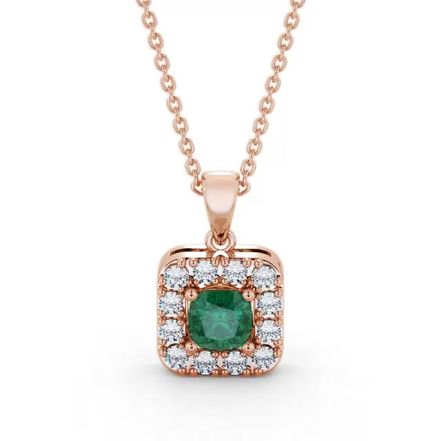 Kensie halo emerald and diamond 1.60ct pendant in a 9K Rose Gold setting. Elegant and exquisite, this pendant showcases a stunning 1.00 Carat cushion-cut emerald gemstone encircled by sparkling 0.60 Carat total weight of round diamonds. The pendant is available in a range of metal and chain options with AAA grade gemstones. We offer a free design service for any customised changes that you may require.